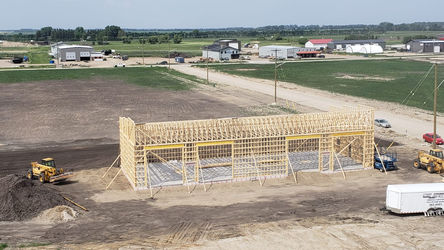 This 40’X100’X16’ shop comes with two bays. Each bay comes with two 14’X14’ O/H doors and one washroom. This heated shop is perfect to work on your latest hobby. Features include a mono slope roof with parapet walls along the gable giving this building a unique look.